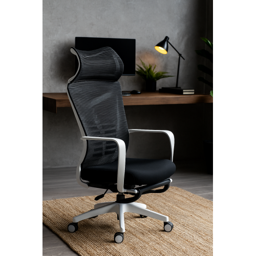 Кресло 1554 — это сочетание инновационного дизайна и полной функциональности для тех, кто ценит комфорт в работе и отдыхе. Модель выполнена в скелетной конструкции с прочным белым корпусом и чёрной нейлоновой сеткой — такое кресло отлично впишется как в минималистичный интерьер, так и в современный офис.